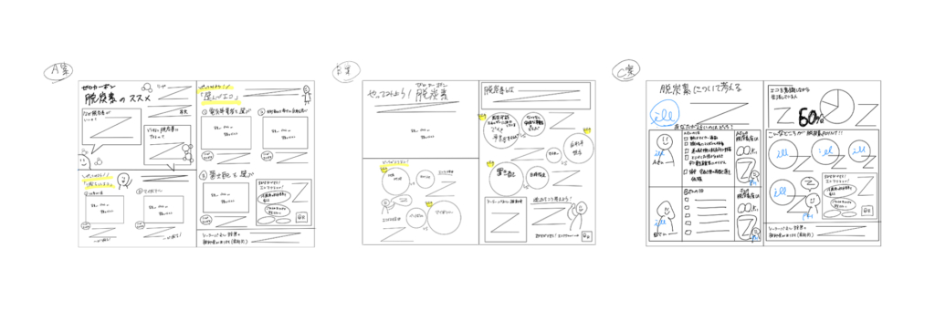 山品 「私たちがテーマやターゲットを決めて送ると、それが何種類ものラフ案になって編集会議の場に出てくるのにも驚かされます。こんなにいろんな伝え方があるんだよと、私たちの考えを汲んで表現してくれて」