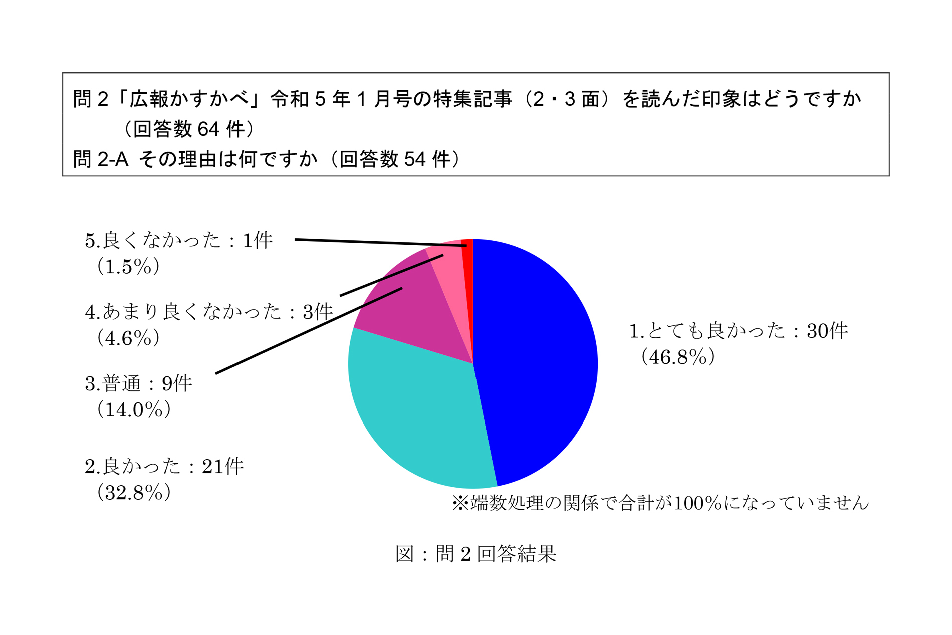柳岡 「インターネットモニター制度を通じて広報かすかべの感想を聞いたアンケートでは、特集を読んだ感想として平均で72.7%の人が「とても良かった」「良かった」と回答してくださっていますね」