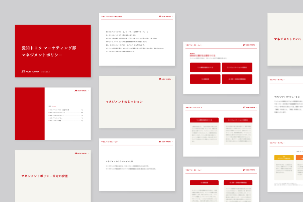 「マネジメントポリシー」の策定にあたっては、会社が掲げるMVVを前提に置きながら、メンバーの幸せとマネージャーの幸せの両方を大切にしながら議論を進めていきました。