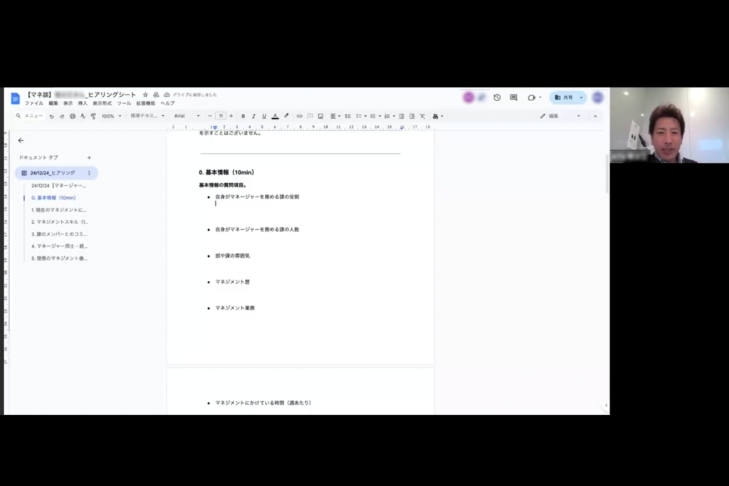 「マネ談」が始まる際には、よくある「マネージャーのマネジメントとはこういうものですよ」的な研修、講義でもスタートするのかな…と思っていました。しかし、初回はrenから「今の立場(マネージャー)としての思いを吐き出してください」とひたすら質問に答えていくというものでした。様々な悩みを抱えていたなかで、自分の思いを伝えることができてかなりスッキリしたことを覚えております。