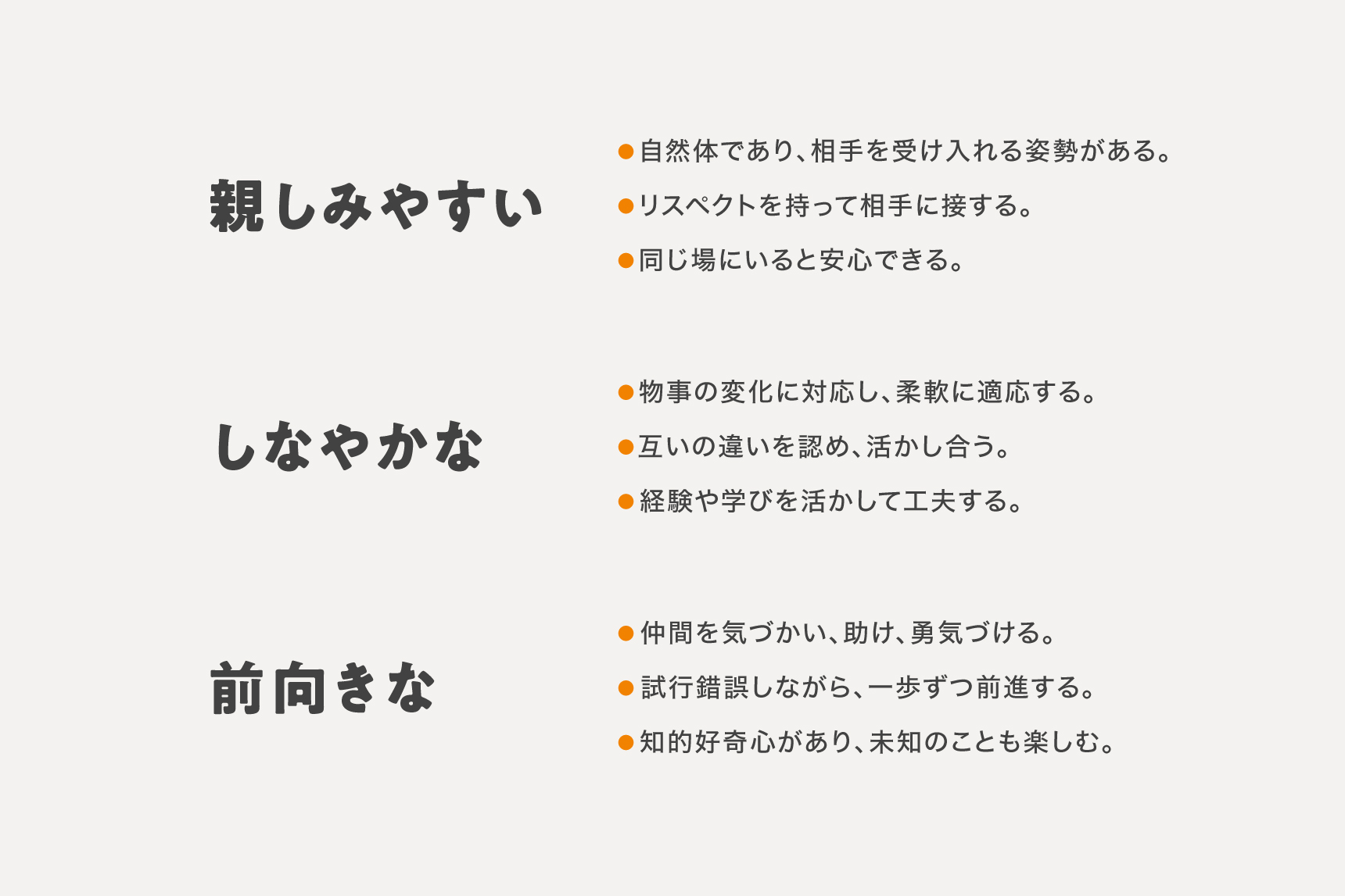 塚本) 組織によって順番の違いはあると思います。うちは、できるところから”らしさ”をかたちにしてきて、最終的に社名が残った。”らしさ”が全然見えていない状態からかたちにしないといけないから、最初から社名のように大きなところから取り掛かるのは大変やと思います。